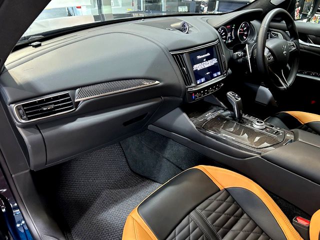 内装はペール・テラコッタレザーを採用し、前席のヘッドレストには「トライデント」と「V8 Ultima」ロゴを刺繍。センターコンソールには限定車の証となる「una di 103」と印字されたバッヂが配されている。