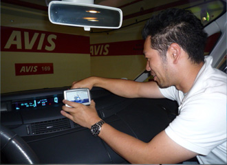 ナビを設置するbond plus 深作氏。 |