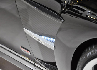 カーボンフェンダーの中にはLEDを埋め込み、サイドビューを演出。 |