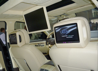 リアにはヘッドレスト&フリップダウンを装着。 |