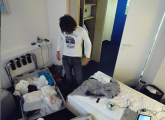 先に荷造りが終わり余裕の深作店長、焦っている私。 |