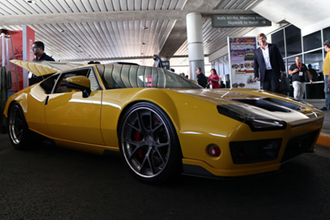 お出迎えは名前も分からないスーパーカーwww